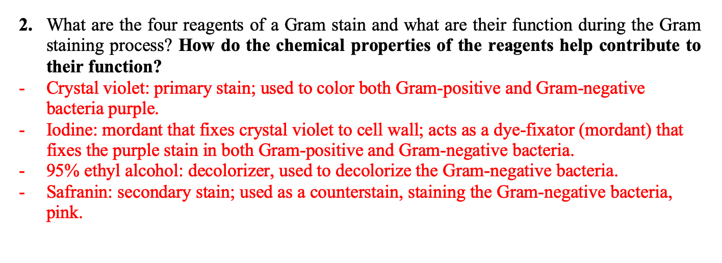 Solved 2 What Are The Four Reagents Of A Gram Stain And Chegg Com